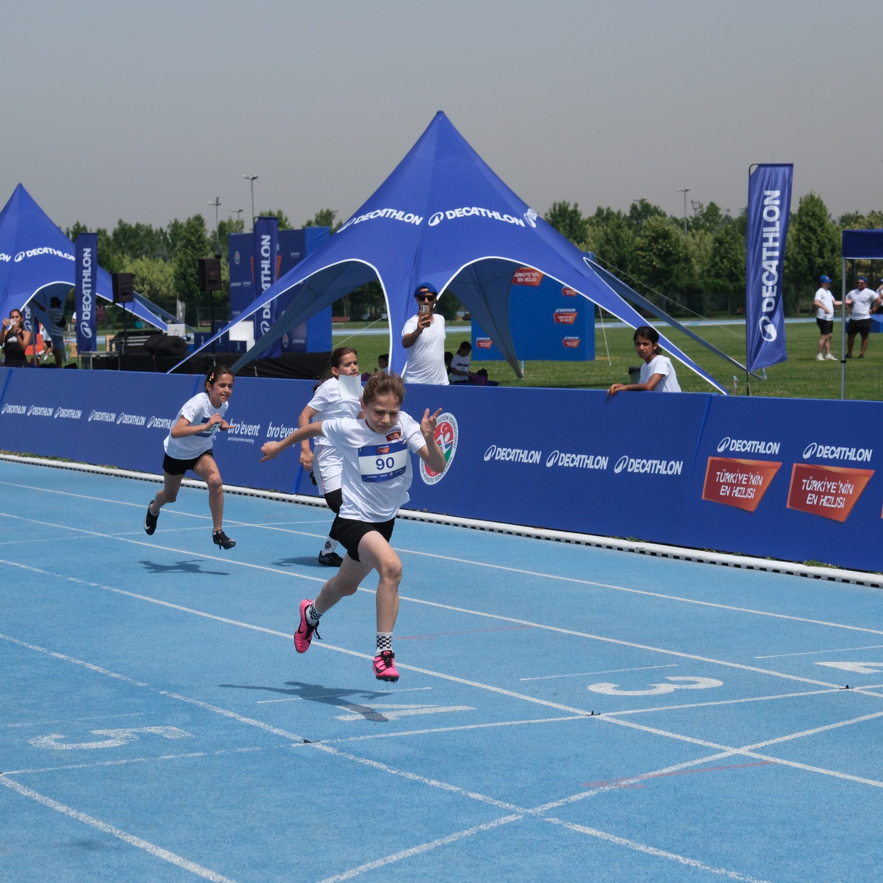 “Decathlon Türkiye’nin En Hızlısı” atletizm yarışlarının Türkiye Finalleri tamamlandı. İstanbul Büyükşehir Belediyesi Kenan Onuk Atletizm Pisti’nde gerçekleşen final yarışlarında, bölge finallerinde dereceye giren 350 çocuk yarıştı.